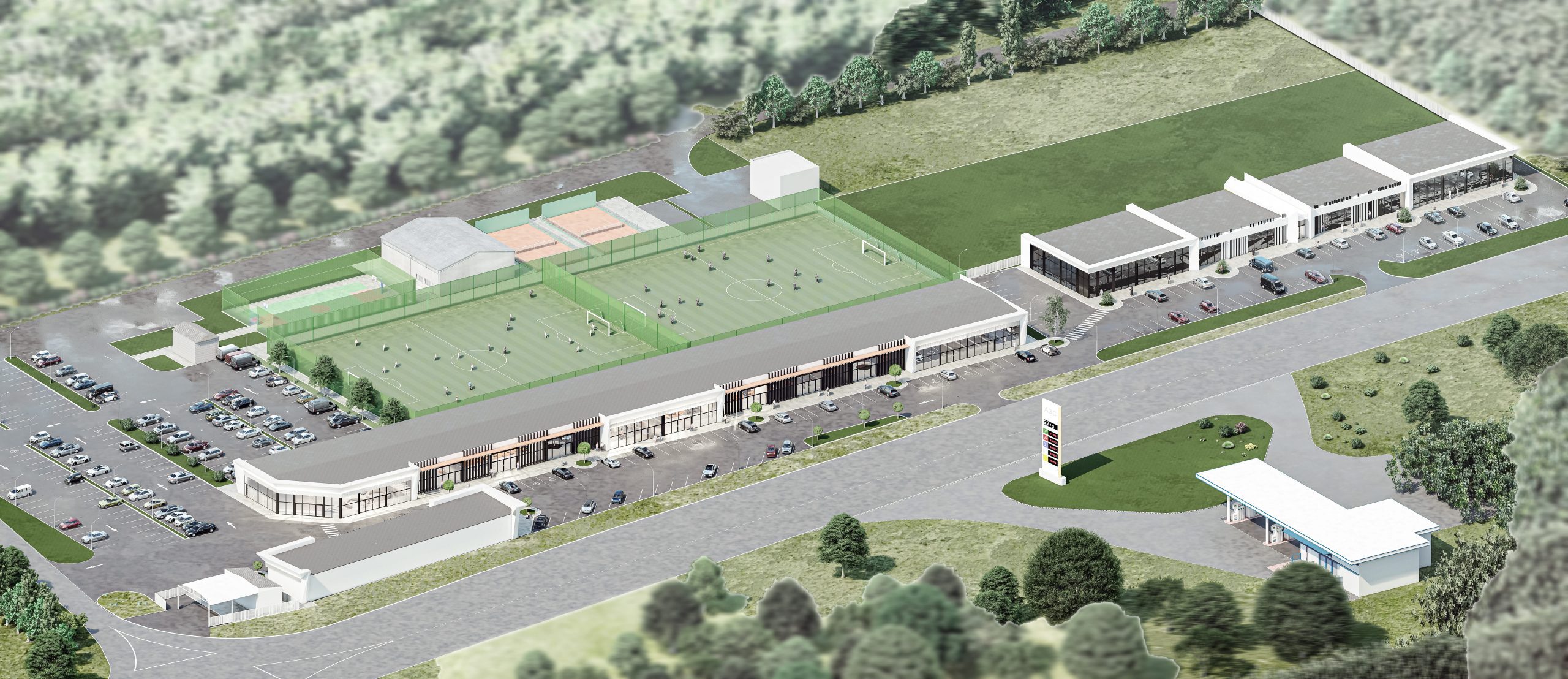 "На території комплексу планується облаштувати сучасну спортивну інфраструктуру - падл-корти та футбольний майданчик, які доповнять функцію ритейл-парку як місця для відпочинку та проведення дозвілля. Очікується, що поєднання шопінгу і спортивних активностей дозволить створити нову точку тяжіння для мешканців Ужгорода та гостей регіону", - пояснив уповноважений представник девелопера Станіслав Матіко.